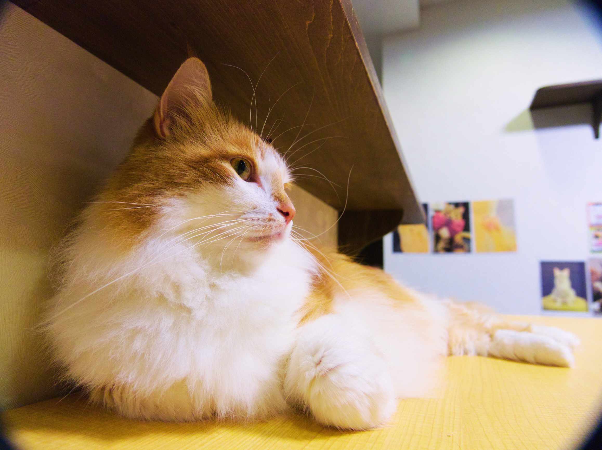 猫たちが気ままに過ごす店内は、温かく落ち着いた雰囲気に包まれています。
